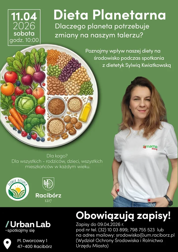 W Raciborzu zwykły obiad może stać się rozmową o klimacie, zdrowiu i codziennych wyborach. W Urban Lab 11 kwietnia o godz. 10:00 pojawi się dietetyczka Sylwia Kwiatkowska, która pokaże, jak układać posiłki bez szkody dla organizmu i środowiska. Spotkanie ma być otwarte dla mieszkańców w każdym wieku, a organizatorzy szczególnie liczą na rodziców z dziećmi, bo dla najmłodszych przygotowano osobny kącik. To propozycja dla tych, którzy chcą zacząć od kuchni, a nie od wielkich deklaracji.