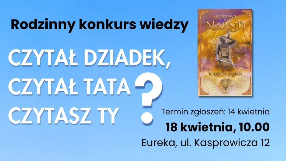 Konkurs oparty jest na drugiej części cyklu „Opowieści z Narnii”, czyli na „Księciu Kaspianie”. To dobra propozycja dla rodzin, które lubią książkowe zagadki i chcą sprawdzić wiedzę w nieco lżejszej, zabawnej formule