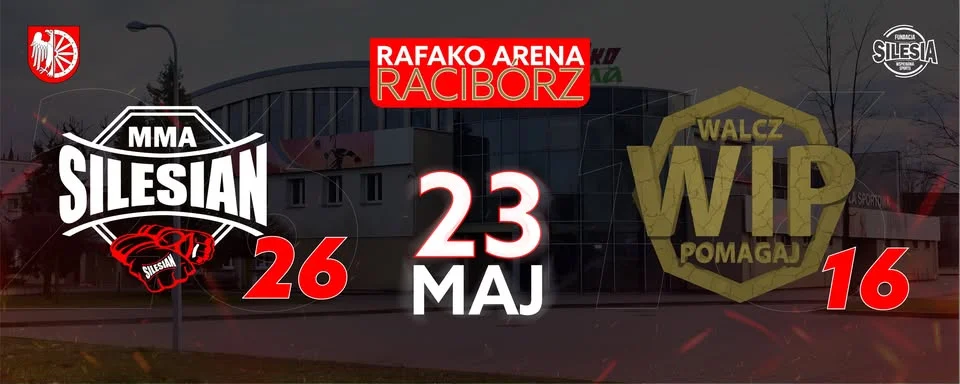 Racibórz szykuje się na mocne wejście w klimat sportów walki 23 maja w RAFAKO Arena po raz pierwszy spotkają się na jednej karcie dwie znane gale: SILESIAN MMA 26 oraz WALCZ I POMAGAJ 16. Będzie głośno, dynamicznie i bardzo emocjonująco — z zawodnikami z całej Polski, lokalnymi nazwiskami i pojedynkami w MMA oraz K1 w małych rękawicach. Warto to zapisać w kalendarzu.