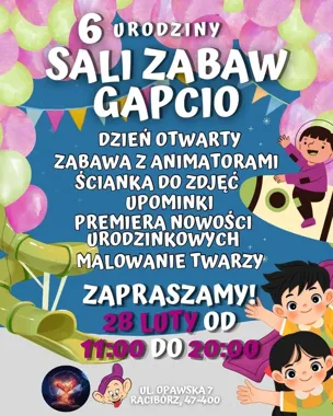 Urodziny Sali Zabaw Gapcio — 6 lat radości w Raciborzu